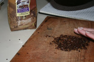 Nothing but fresh fish beats a great cup of coffee in the morning while at camp. To make a great cup of coffee you need beans. Fresh beans. Ground beans. We provide many luxuries at our camps but a coffee grinder in not one of them. When the beans are whole and the need for coffee is great, ingenuity rules the day. The discussion was short. Besides changing the coffee planner for the next trip, a few ideas were floated as to how to extract coffee flavor from beans. Chewing the beans was considered only for a moment. Crushing the beans into a brewable ingredient fostered a few ideas. Using a frying pan and cutting board proved quite satisfactory. We took turns providing the arm power but the end result was worth it.