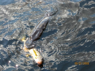 Keep in mind that if this happens and you land both fish, the northern must be released. The hooked walleye may be kept.